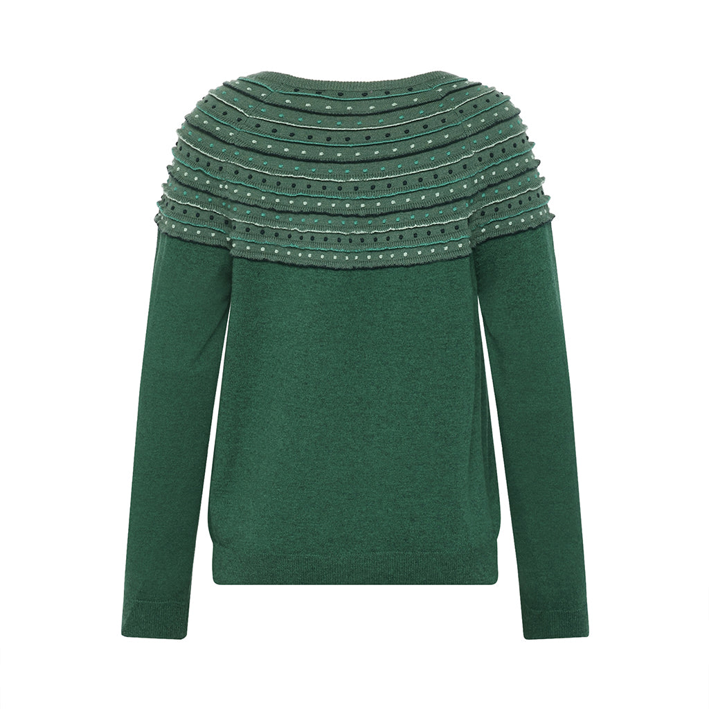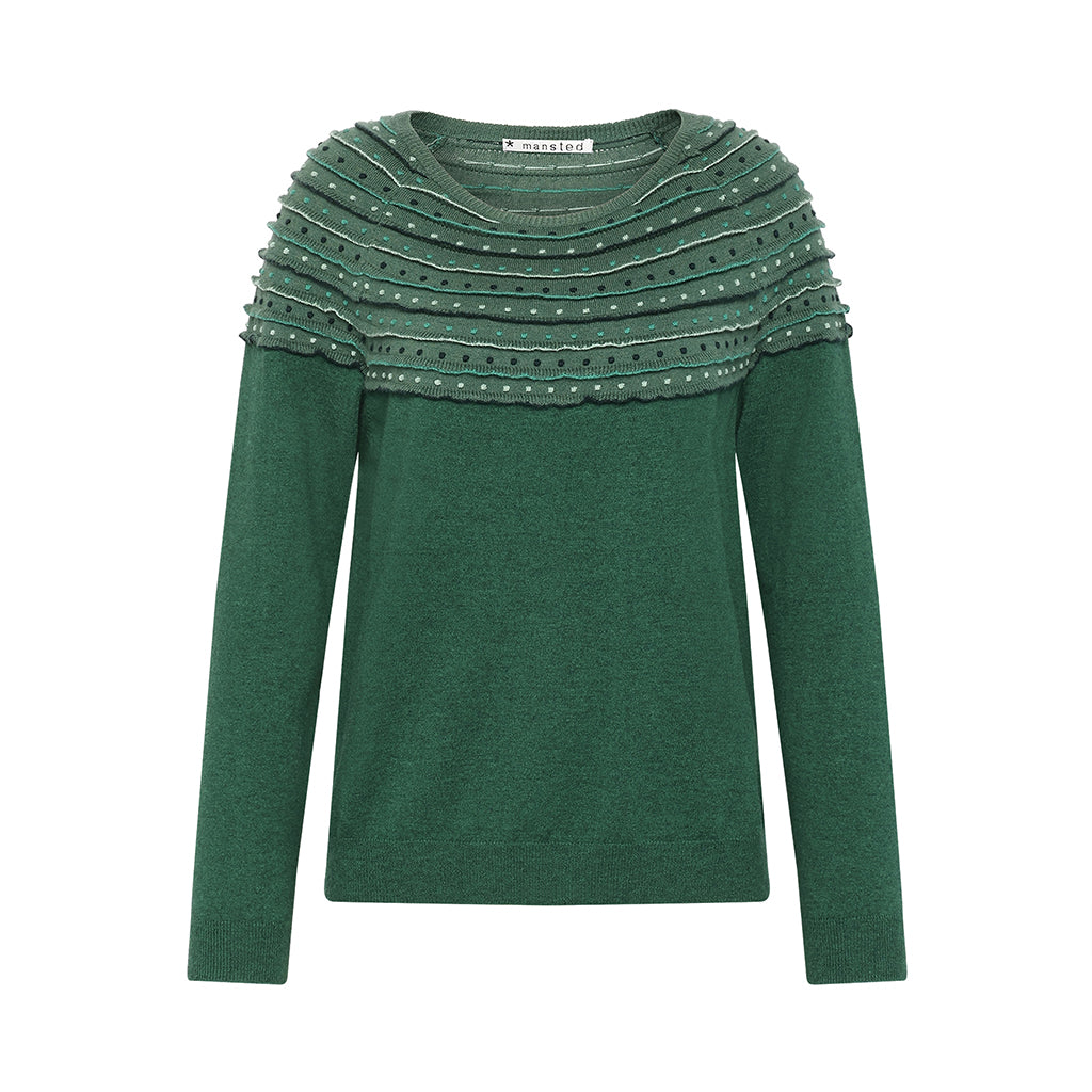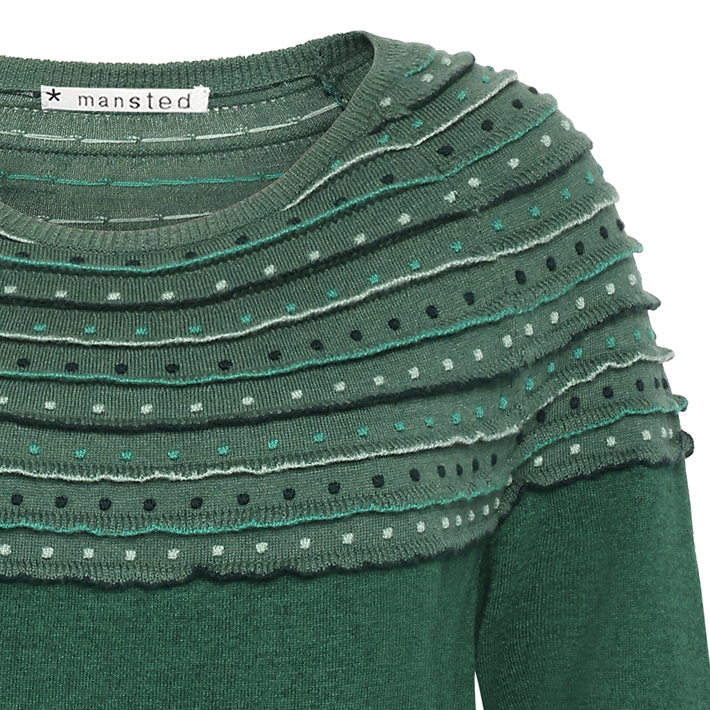 Wunderschöner Strickpullover vom dänischen Label mansted. Der Pullover hat im oberen Bereich sehr süße Verzierungen aus Rüschchen und Pünktchen. Er ist aus 70 % Merinowolle (mulesingfrei) und 30 % Baumwolle und sehr angenehm zu tragen.