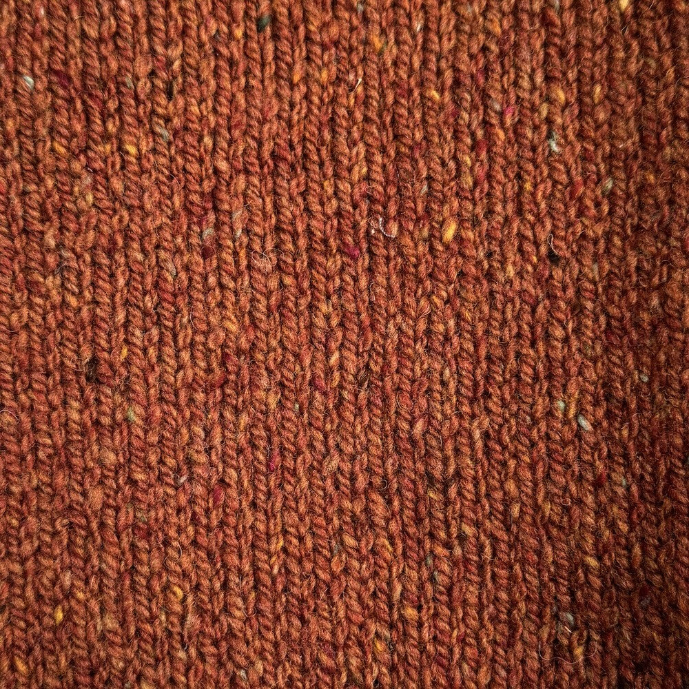 Die Merinowolle kommt aus der Manufaktur von Donegal Yarns, die für das berühmte irische Donegal Yarn bekannt ist. Die 'Flecks', die farbigen Einschüsse werden in das mehrfarbige Garn eingesponnen.
