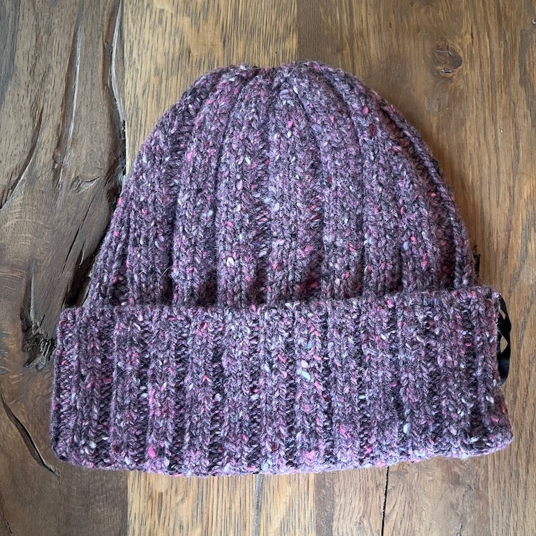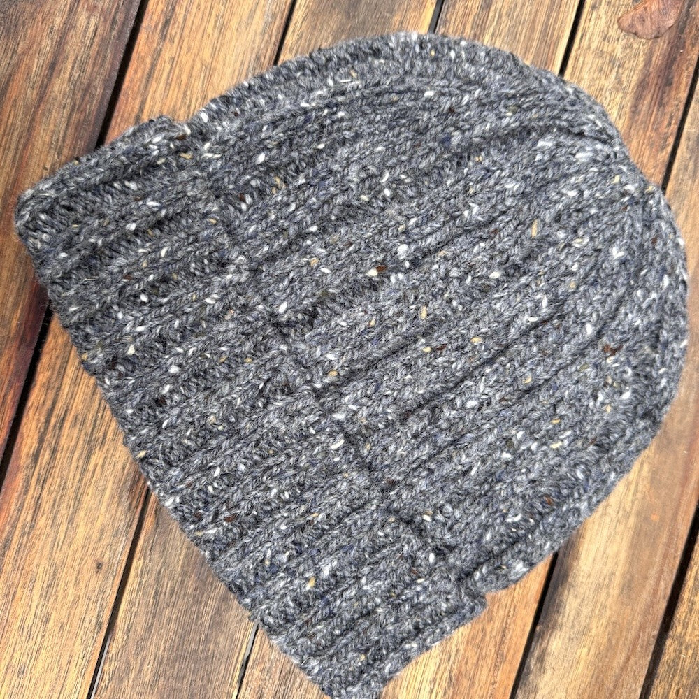 Sehr schöne, gerippte Donegal Mütze von Fisherman out of Ireland. Die 'Flecks' im Donegal Tweed Garn machen die Mütze schön lebendig und zu einem echten Hingucker.