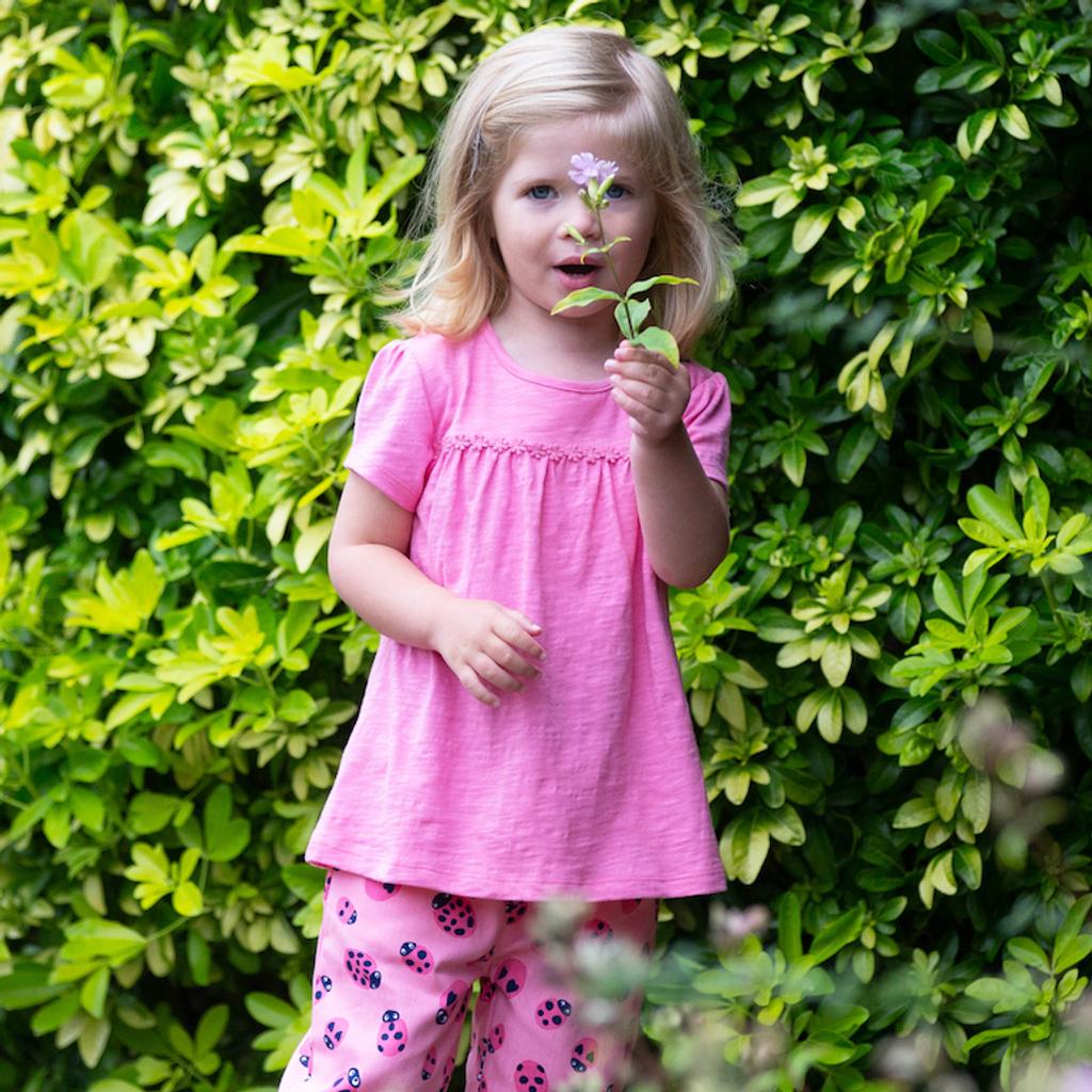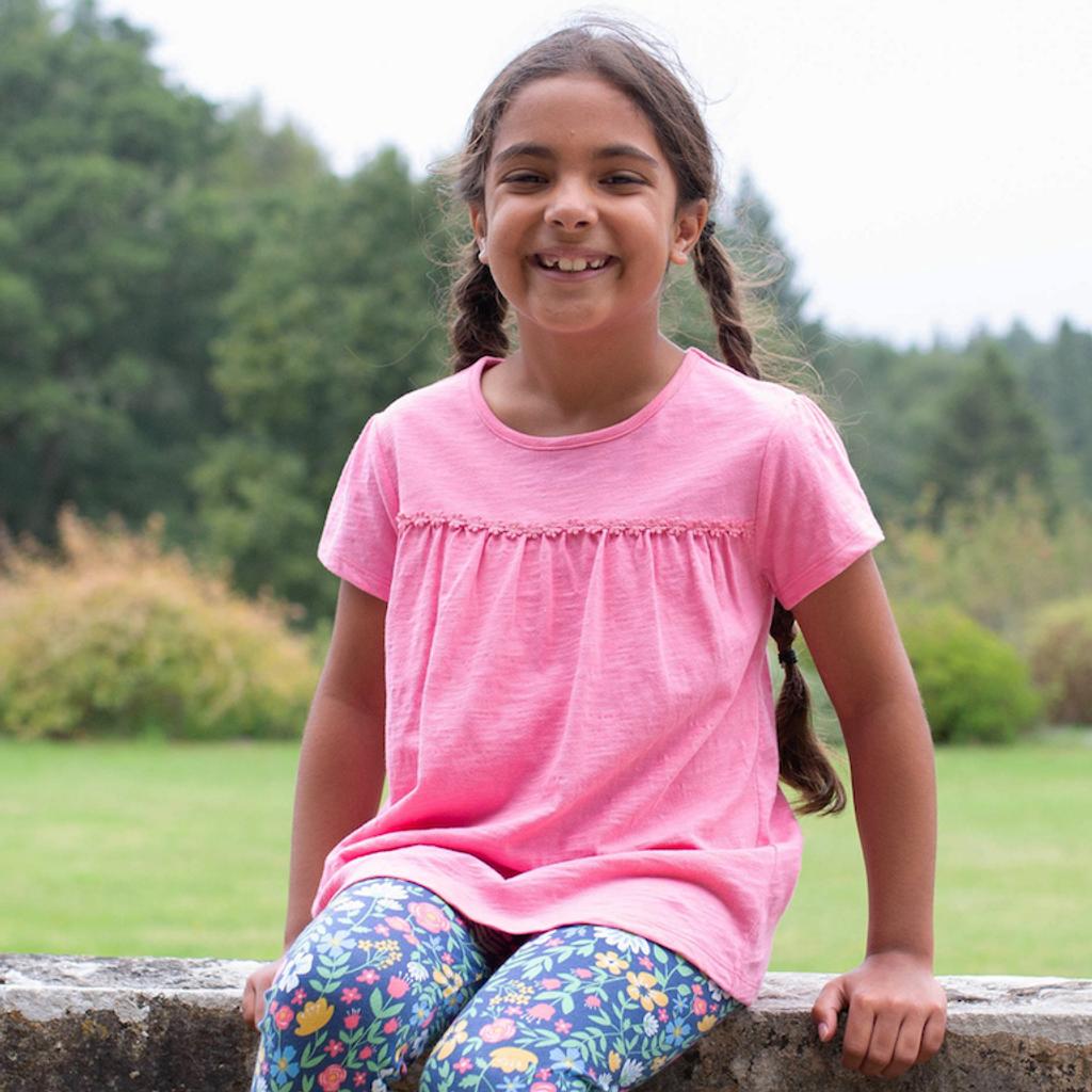 Wunderschöne Tunika in Pink mit kleiner Spitzenborte auf der Brust von Kite. Kokosnussknöpfen an der Schulter bis Größe 98.